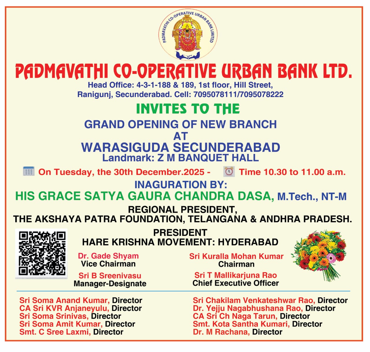 Padmavathi Co Operative Urban Bank Limited was established in the year 1998 and completed 27 years of services to the customers.